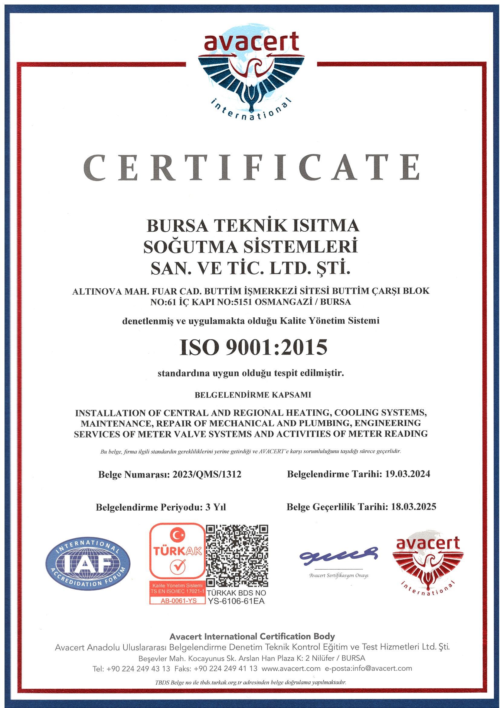 Bursa Teknik Isıtma ve Soğutma Sistemleri San. ve Tic. Ltd. Şti. Ailesi Olarak Başarılarımızı Sizlerle Paylaşmaktan Onur ve Gurur Duyarız.